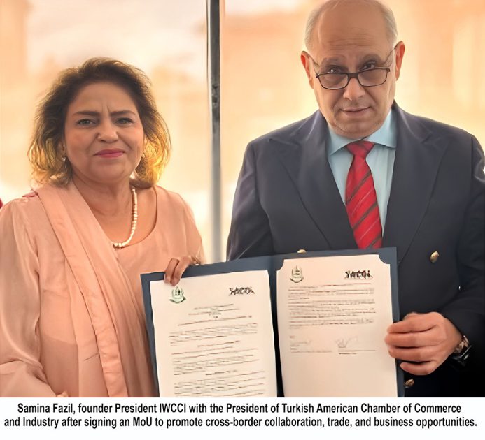 واشنگٹن(وے آوٹ نیوز) ویمن چیمبر آف کامرس اینڈ انڈسٹری (IWCCI) کی بانی صدر ثمینہ فاضل نے امریکہ کے دورے کے دوران ترک-امریکن چیمبر آف کامرس کے ساتھ ایک مفاہمتی یادداشت (MoU) پر دستخط کیے۔ اس معاہدے کا مقصد پاکستانی خواتین کاروباریوں کو بین الاقوامی منڈیوں تک رسائی فراہم کرنا اور اقتصادی شراکت داری کو فروغ دینا ہے۔