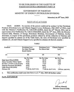 اسی طرح لیوی میں ردوبدل کرتے ہوئے پیٹرول پر لیوی 78 روپے سے کم ہو کر 75 روپے 52 پیسے فی لیٹر کر دی گئی۔ہائی اسپیڈ ڈیزل پر لیوی *78 روپے* سے کم کر کے 74 روپے 51 پیسے فی لیٹر کر دی گئی۔مٹی کے تیل پر 18 روپے 95 پیسے اور لائٹ ڈیزل آئل پر 15 روپے 37 پیسے فی لیٹر لیوی برقرار ہے۔