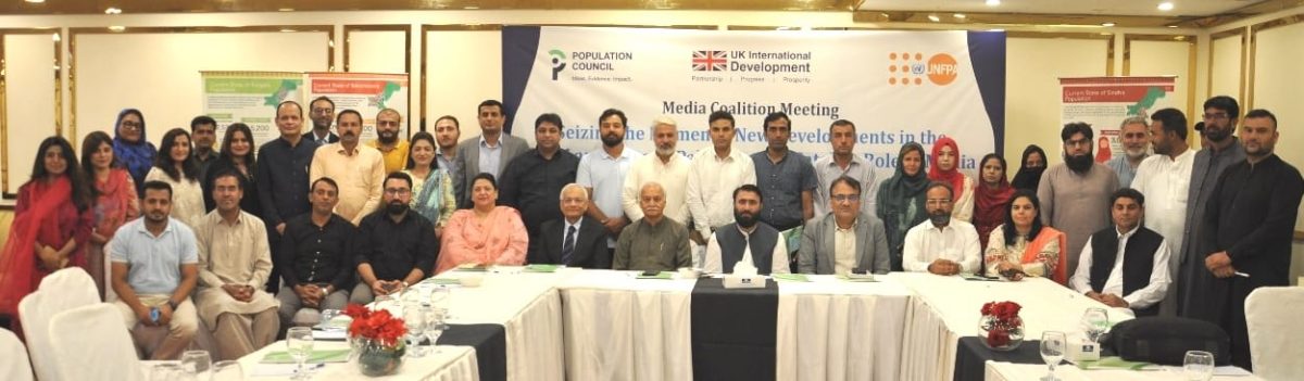 اسلام آباد– پاپولیشن کونسل نےیو این ایف پی اے “میڈیا کولیشن برائے آبادی” کا اجلاس منعقد کیا جس کا موضوع تھا” پاکستان میں تولیدی صحت کے منظرنامے میں نئی پیش رفت اور میڈیا کا کردار”۔ اجلاس میں ملک کے تمام صوبوں سے تعلق رکھنےو الےوالے نمایاں میڈیا اداروں کےصحافیوں، مذہبی سکالرز اور طبی ماہرین نے شرکت کی اور میڈیا کے ذریعے خاندانی منصوبہ سازی اور تولیدی صحت میں بہتری لانے پر گفتگو کی گئی