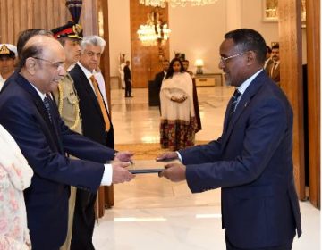 اسلام آباد (ایم این این): ایتھوپیا کے پاکستان میں سفیر ڈاکٹر عمر حسین اوبا نے منگل کے روز ایوانِ صدر میں منعقدہ ایک باضابطہ تقریب کے دوران آصف علی زرداری کو اپنی اسنادِ سفارت پیش کیں۔ تقریب کے بعد صدرِ مزید پڑھیں